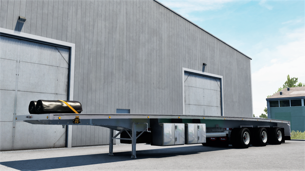 This trailer hasn't been updated since it was updated to be ownable back in 2018/2019. I decided it needed a face-lift after being forgotten for so long. There have been massive changes made to it. The biggest change is turning the trailer into a 53ft flatbed instead of it's original 48ft version. I did this because there are not many 53ft flatbed mods out there, at least when i first started working on this trailer. I've added 21 different chassis' with all kinds of configurations. This was the first trailer to publicly include overhang loads and influenced a lot of other modders to include overhang loads in their trailers as well. The overhang loads can bounce you around once you pick it up from a loading area. Has to be that way because of the collisions of the load and for the A.I. to recognize the load is even there and not just drive through it. So i'd recommend using a no damage mod when hauling the overhang loads. There are plans to add even more to it in the future including the biggest change of making a B-Train variant of the trailer but until I learn how to make a B-Train work, it'll be on the list of everything else I want to add in the near future. I genuinely hope everyone enjoys this trailer, I put 100's of hours into this trailer over the past 3 years and just want everyone to have a good time with it.